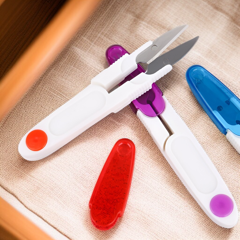 カラフル透明カバー付き安全ミニ裁縫ハサミ 家庭用多機能糸切り 十字刺繍用